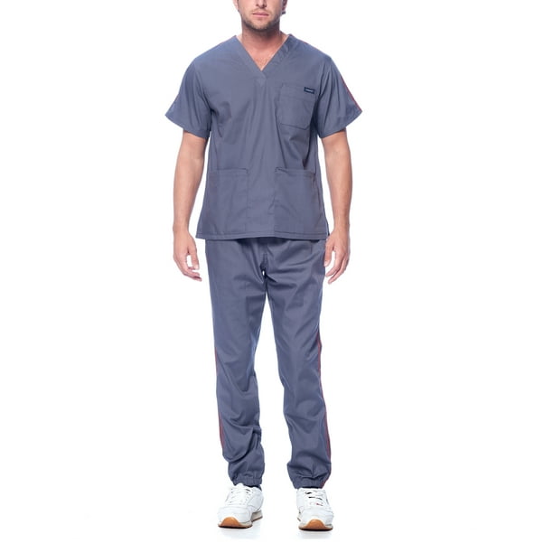 Dagacci Medical Uniform Unisex Men And Women V Neck Top Joggers Pants Athletic Trim Cotton Scrub Set Pewter Gray Xxxl Walmart Com